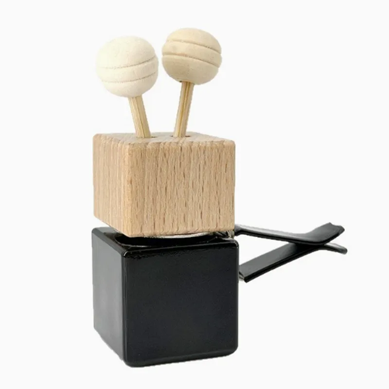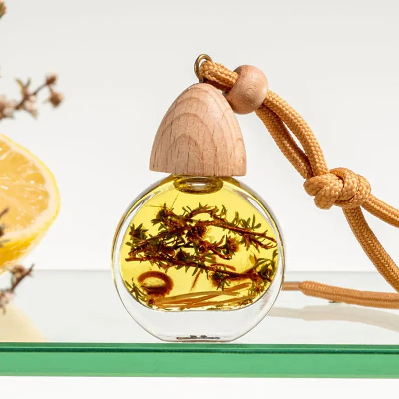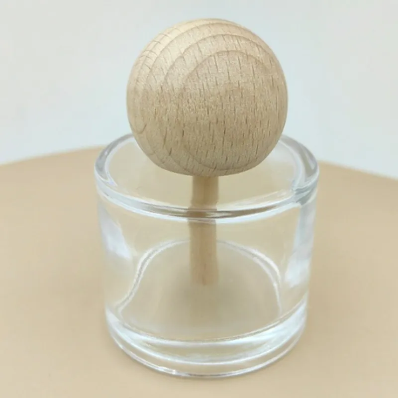 - 50 ml round glass car perfume bottle with wooden diffuser