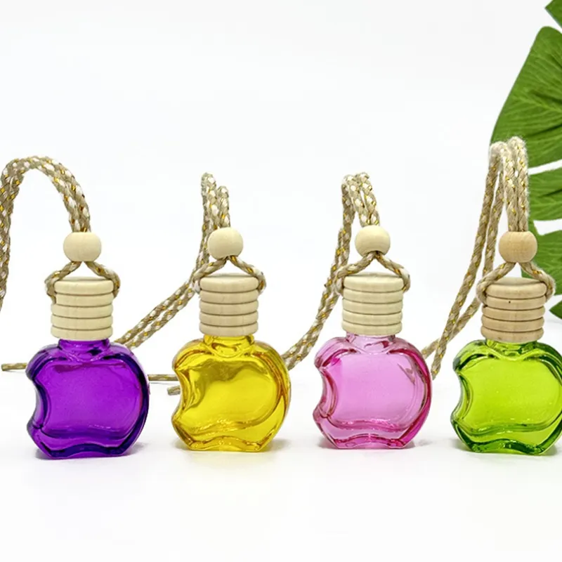 - 10 ml apple-shaped glass car air freshener bottles with hanging cord