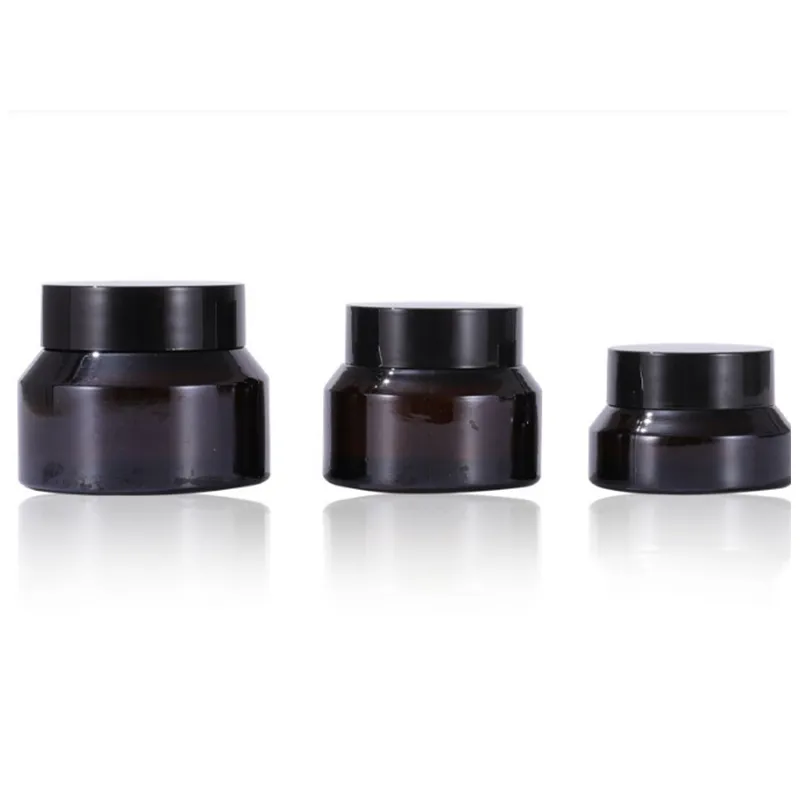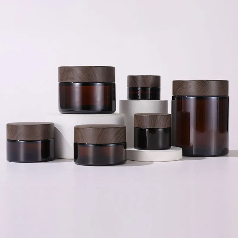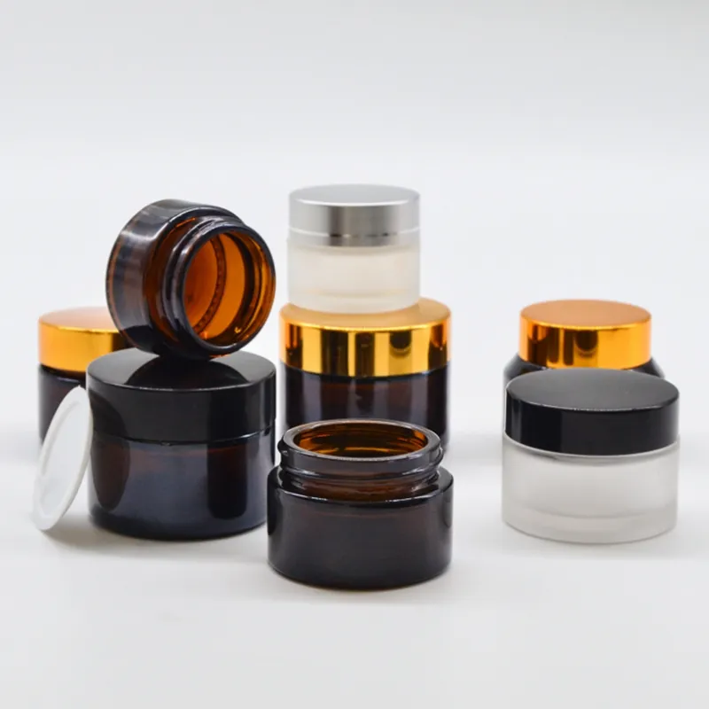 Cosmetic amber glass jars are available in multiple capacities with various lid options.