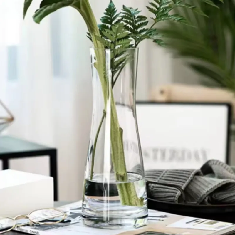 The glass vases offer a clean and visually engaging way to grow and display indoor plants for the overall decorative appeal. Made from thick, high-transparency glass, the vases with wide opening allows plant roots to spread naturally, making them suitable for indoor hydroponic plants such as pothos, lucky bamboo, and pennywort. Available in multiple sizes and shapes, these glass flower pots can be adapted to different interior styles and planting needs. Customization options include logo and pattern decoration, making them suitable for both retail and decorative applications.